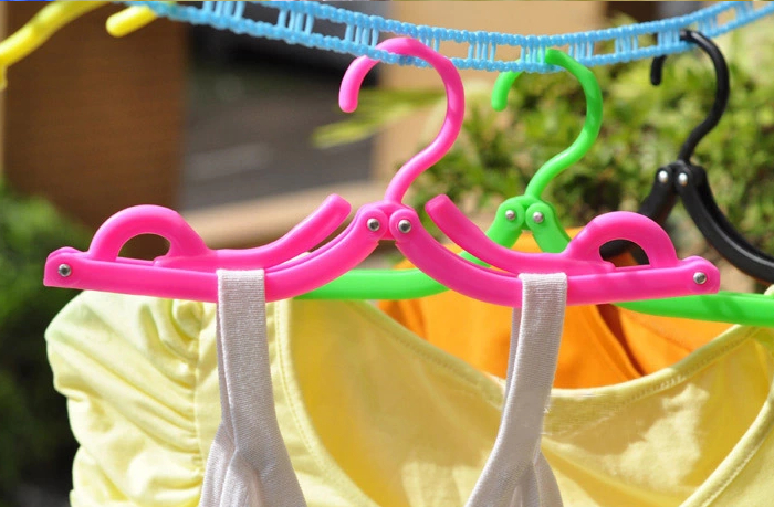 出差旅行時,衣服只能塞在旅行箱里, 衣架也不便攜帶。